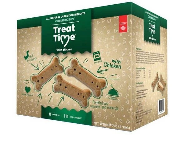 La boîte de biscuits Treat Time de Bio Biscuit vous permet d’offrir de délicieux biscuits au poulet à votre chien. La cuisson au four des biscuits permet de ressortir le goût des ingrédients qui se retrouvent dans le biscuit, le rendant plus appétent. Ces biscuits feront à merveille pour les scéances d’entraînement.