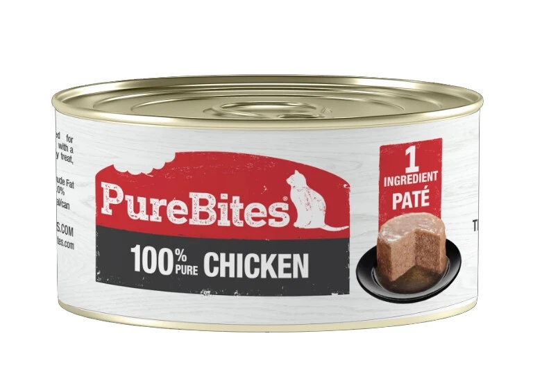 La conserve PureBites 100 % pur poulet contient un seul ingrédient ; du poulet. La texture de la pâtée se rapproche de la mousse et est facile à manger. Elle peut être donnée comme friandise, mélangée à l’alimentation ou même pour offrir un supplément de protéine à votre animal. La conserve PureBites 100 % pur poulet ne contient pas d’agents de conservation. Elle est idéale pour les chats souffrant d’embonpoint, de diabète, d’allergies, de problèmes digestifs ou les chats qui ont une diète restreinte.