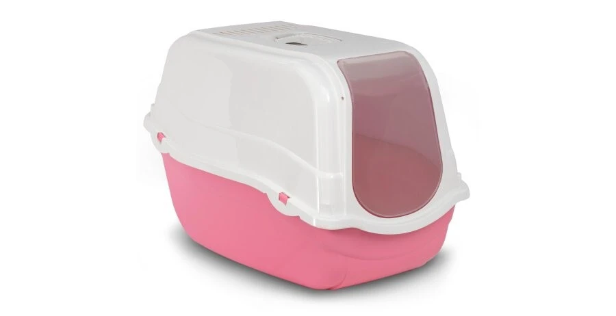 L’ensemble de bac à litière pour chats Roméo de Bergamo blanc et corail possède un dôme avec une grande porte pour laisser entrer votre chat ou votre chaton. La poignée sur le dessus vous permet de bouger la litière au moment de la nettoyer. Il y a un endroit pour mettre un filtre au charbon sur le dôme pour réduire les odeurs dégagées.