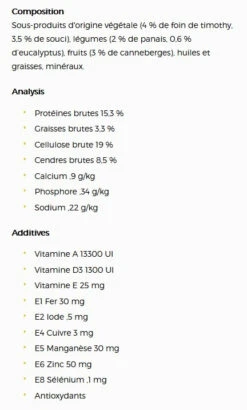 La gâterie Complete Crock aux herbes de Versele-Laga est la friandise que vos rongeurs adoreront. Elle est constituée de 2 textures différentes : une farce tendre aux herbes et enrichie d’oméga-3 et de vitamines C, le tout enrobé d’une coquille croustillante qui satisfera les rongeurs les plus difficiles.