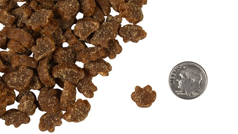 Les friandises pour chats au saumon Purr Snackitty de la compagnie Fromm sont tendres et délicieuses. Faites uniquement avec du saumon véritable, ces petites bouchées ne contiennent que deux calories et conviennent à tous les chats, peu importe leur âge ou leur race.