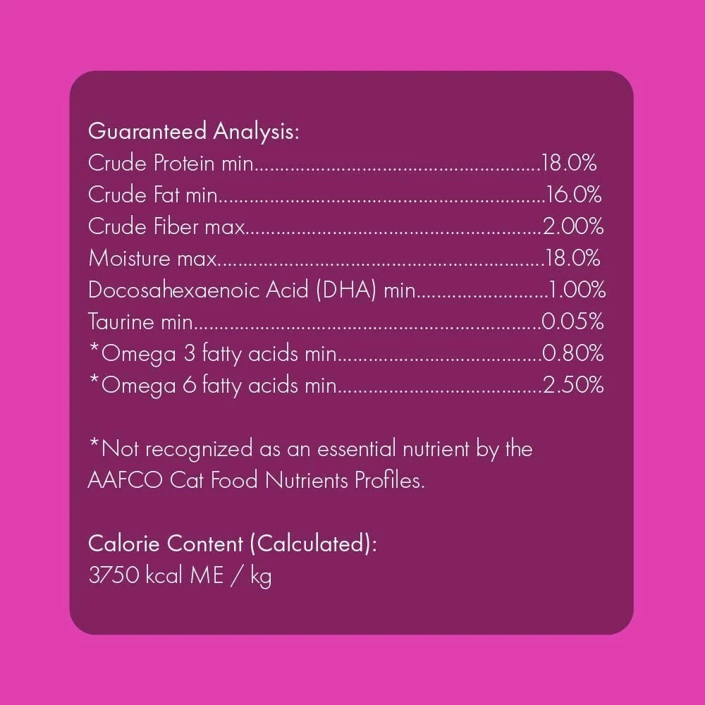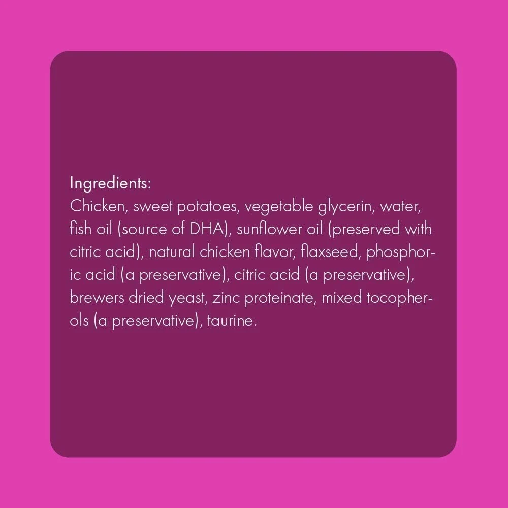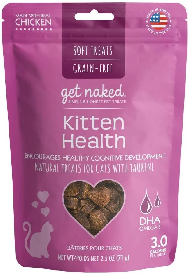 Les gâteries tendres Get Naked pour chatons sont faites à base de poulet et contiennent de l’ADH provenant des oméga-3 et 6 pour aider le développement cognitif de nos jeunes amis à quatre pattes. Les omégas aideront également à favoriser une peau et un pelage en bonne santé. De plus, l’ajout de taurine dans les gâteries favorise une bonne santé cardiaque ainsi qu’une bonne vision. Votre chaton va en raffoler!