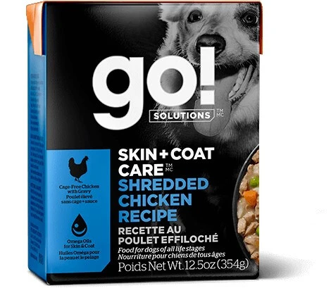 Le ragoût recette au poulet effiloché avec grains Go ! Skin + Coat Care est parfait pour les chiens qui perdent leurs poils. Il n’a aucun agent de conservation artificiel et il contient de la citrouille qui aide à la digestion. Un supplément de taurine est ajouté pour aider à garder le cœur des chiens en santé et une bonne vision. L’emballage fait de carton est une option innovante et facilement refermable. De plus, la boîte est 100 % recyclable. Une saveur alléchante que vos chiens adoreront !