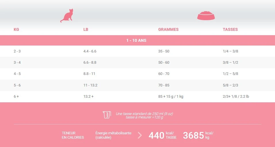 La nourriture 1St Choice Adulte Intérieur-Vitalité convient aux chats de 1 à 10 ans. Elle est faite d’ingrédients de haute qualité et ne contient aucun maïs, blé ou soya. Elle contient du poulet frais ainsi que des grains entier facile à digérer. La formule est conçue pour les chats vivants à l’intérieur. Elle réduit les boules de poils et diminue les odeurs corporelles.